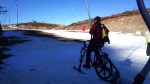 Pero en cuanto tomamos algo de pendiente, no importa la cantidad de nieve, ya que esquiamos con la bici… A diferencia del uso para llanear, en el descenso por una pendiente así, se agradece que la nieve esté suelta y sin pisar, ya que nos ofrece más control que si fuera una pista de nieve dura.